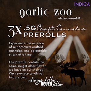 Pre-rolls | IndicaHazy Moose | .5g Pre Rolls - 3pk | Garlic Zoo$10.00Each
