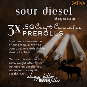 Pre-rolls | SativaHazy Moose | .5g Pre Rolls - 3pk | Sour Diesel$10.00Each