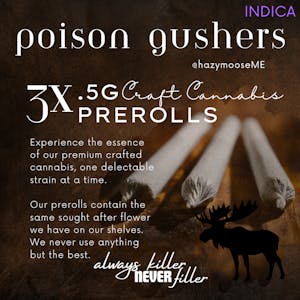 Pre-rolls | IndicaHazy Moose | .5g Pre Rolls - 3pk | Poison Gushers$10.00Each