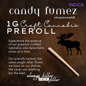 Pre-rolls | IndicaHazy Moose | 1g Pre Roll | Candy Fumez$10.00$7.00Each