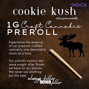 Pre-rolls | IndicaHazy Moose | 1g Pre Roll | Cookie Kush$10.00$7.00Each