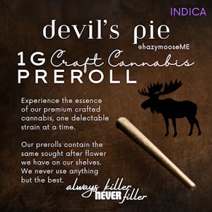 Pre-rolls | IndicaHazy Moose | 1g Pre Roll | Devil's Pie$10.00$7.00Each