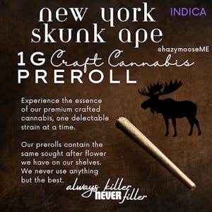 Pre-rolls | IndicaHazy Moose | 1g Pre Roll | New York Skunk Ape$10.00$7.00Each