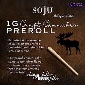 Pre-rolls | IndicaHazy Moose | 1g Pre Roll | Soju$10.00$7.00Each