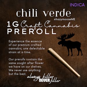 Pre-rolls | IndicaHazy Moose | 1g Pre Roll | Chili Verde$10.00$7.00Each